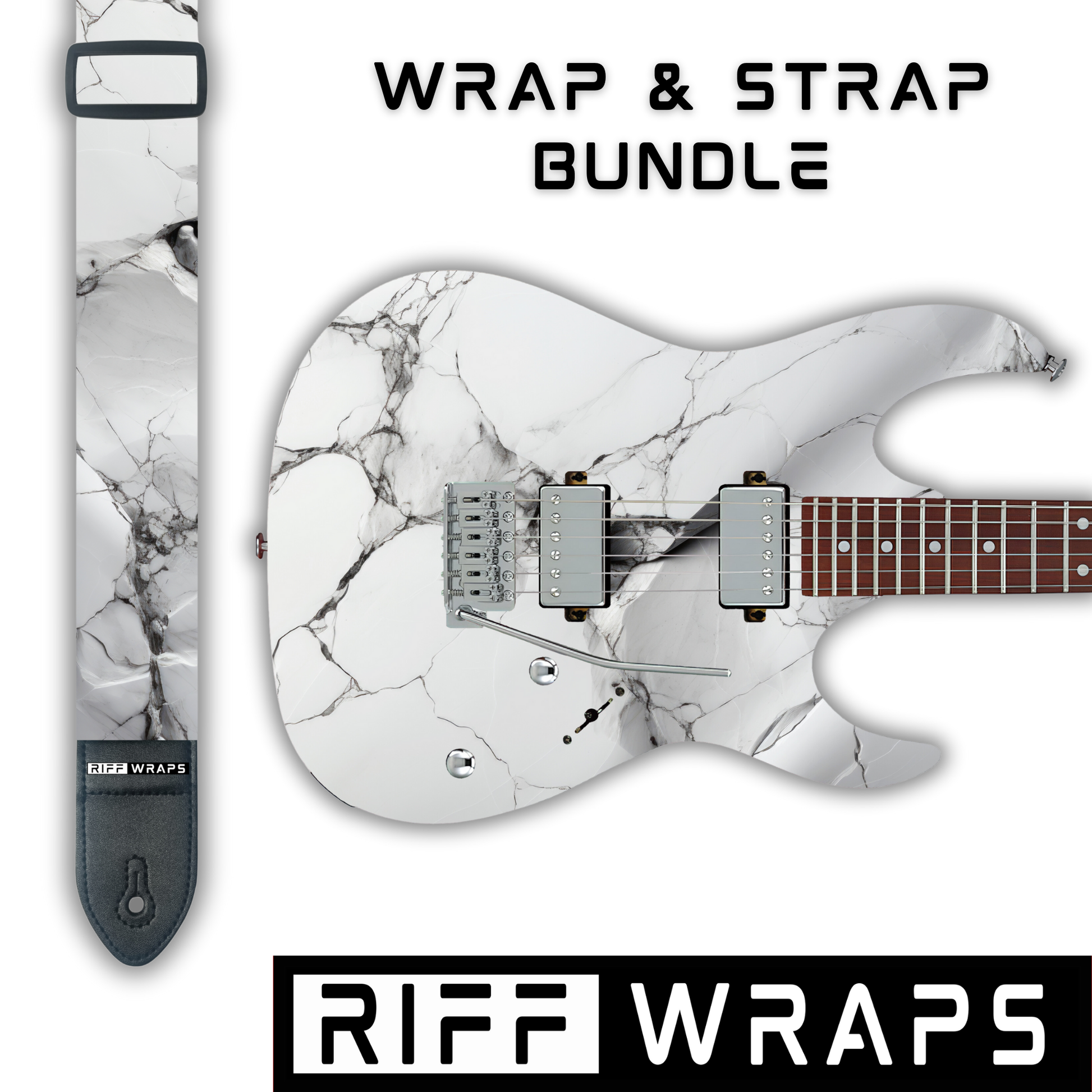 Marble - White & Black - Guitar Wrap & Strap Bundle